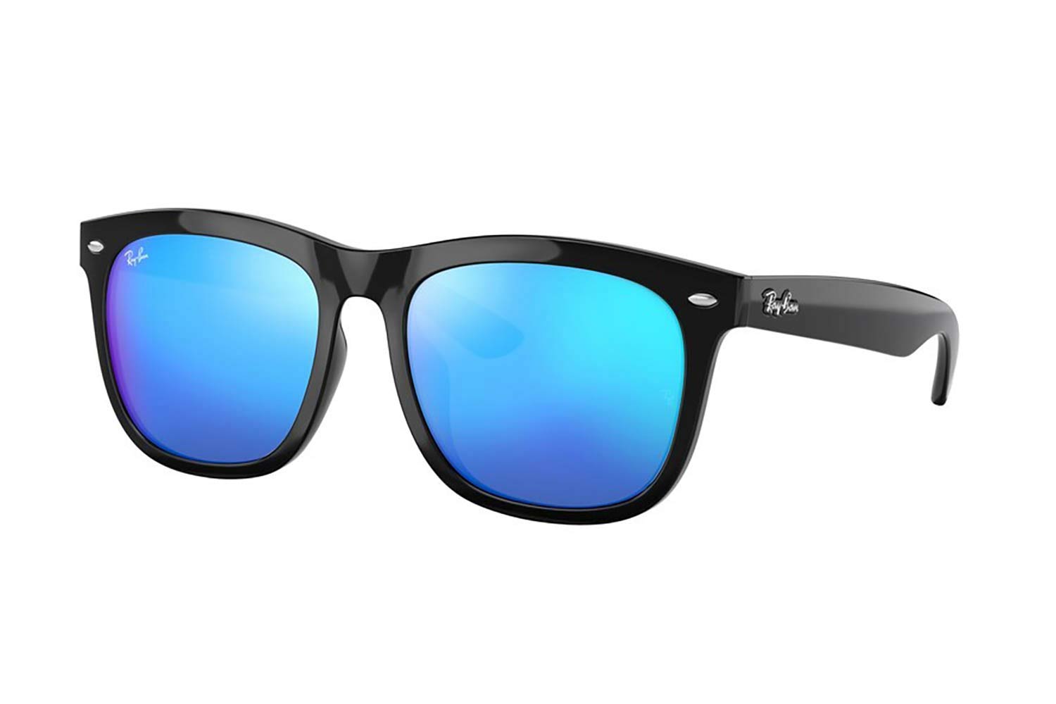 New collection . Size: 57 Rayban 4260D 601/55 57, Τετράγωνο σκελετός Injected, Μαύρο, Black Black, φακοί Μπλε με Καθρέφτη Πολυανθρακικό Base 6, Unisex, Full Rim, Low Bridge Fit γυαλιά ηλίου Unisex