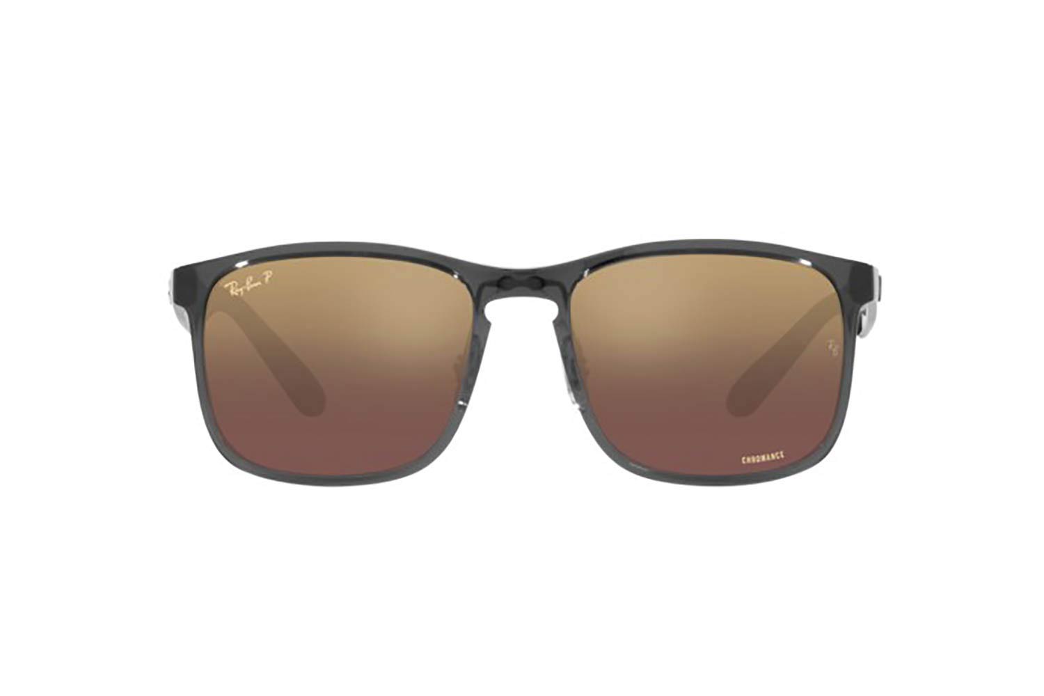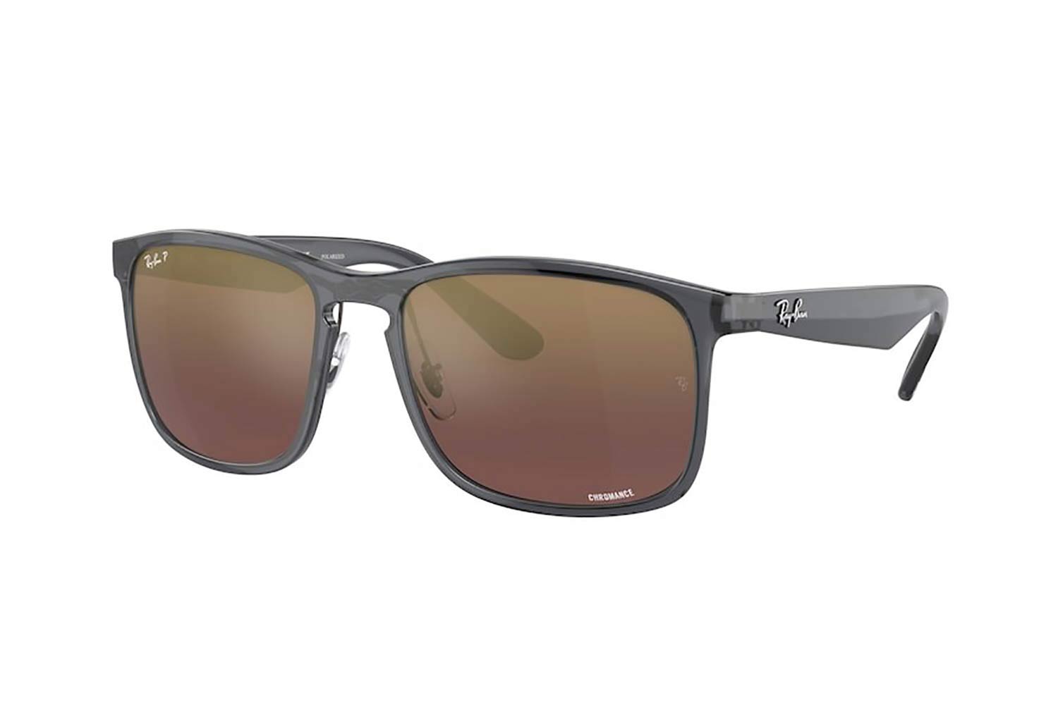 Rayban 4264 876/6B 58 Frame acetate grey GREY, φακοί purple mirror gold polar plastic polarized 3p Base 6 Decentered Trans:12.1, Ανδρικό, Full Rim γυαλιά ηλίου