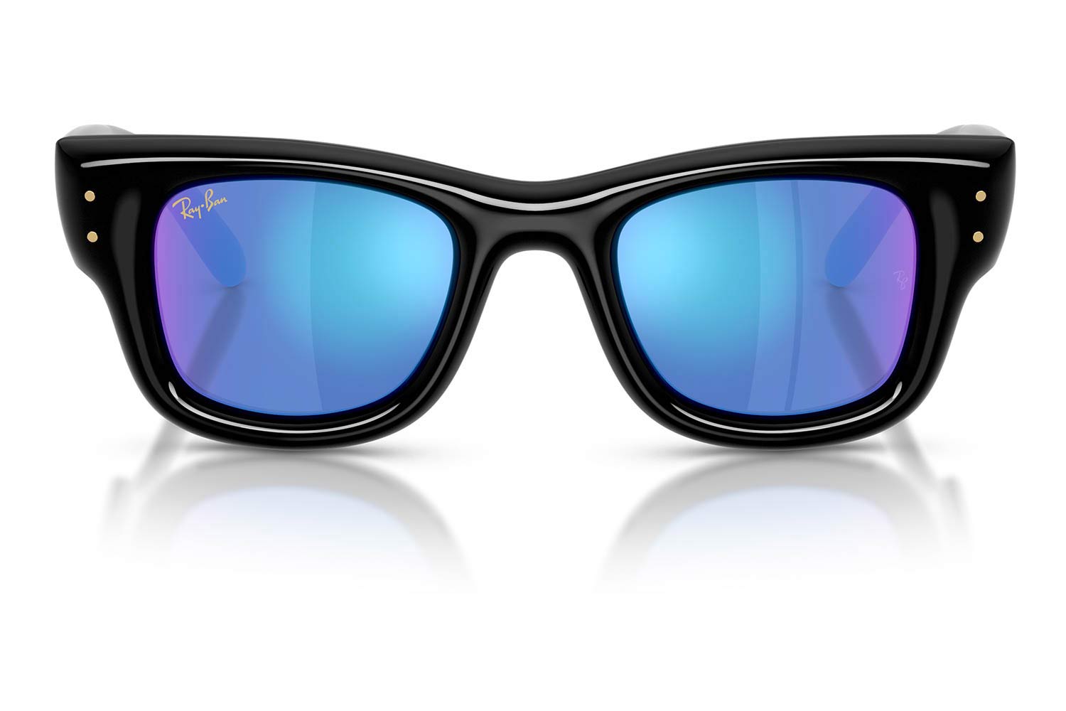 Rayban 4940 WAYFARER PUFFER 601/55 50, Τετράγωνο σκελετός Nylon, Μαύρο, Black Black, φακοί Ανοιχτό Πράσινο με Μπλε Καθρέφτη Βιολογικό Πολυαμίδιο - Light Green Mirror Blue, Unisex, Full Rim, High Bridge Fit γυαλιά ηλίου Unisex