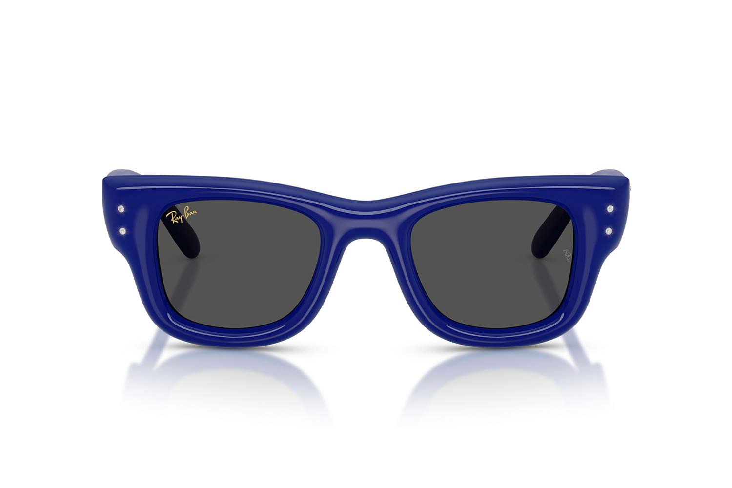 47 Rayban 4940B WAYFARER PUFFER 686087 47, Τετράγωνο σκελετός Nylon, Μπλε, Blue Blue & Strass, φακοί Σκούρο Γκρι Βιολογικό Πολυαμίδιο - Dark Grey, Unisex, , High Bridge Fit γυαλιά ηλίου Unisex