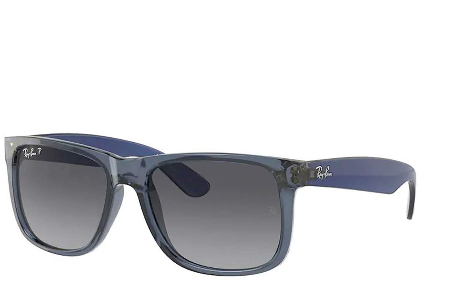Rayban Justin 4165 6596T3 51 σκελετός acetate blue, φακοί grey gradient polar πλαστικό polarized 3p Base 6 Decentered Trans:13 Ανδρικό Full Rim Ανδρικό Γυαλιά ηλίου sunglasses