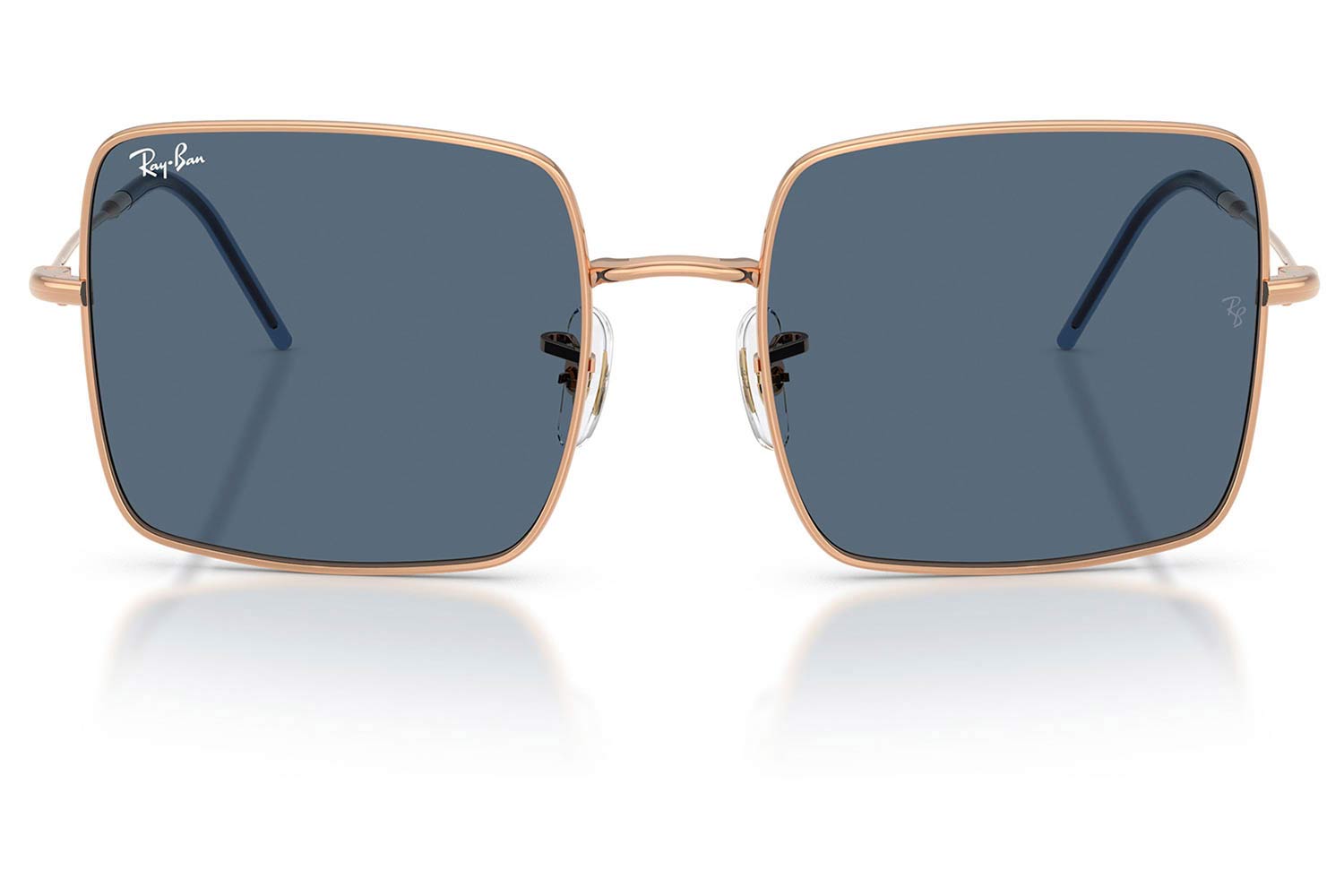 56 Rayban R0104S SQUARE REVERSE 92023A 56, Τετράγωνο σκελετός Μεταλλο, Χρυσό, Gold Rose Gold, φακοί Σκούρο Μπλε Βιολογικό Πολυαμίδιο - Dark Blue, Γυναικείο, Full Rim, Adjustable Nosepads γυαλιά ηλίου Γυναικείο