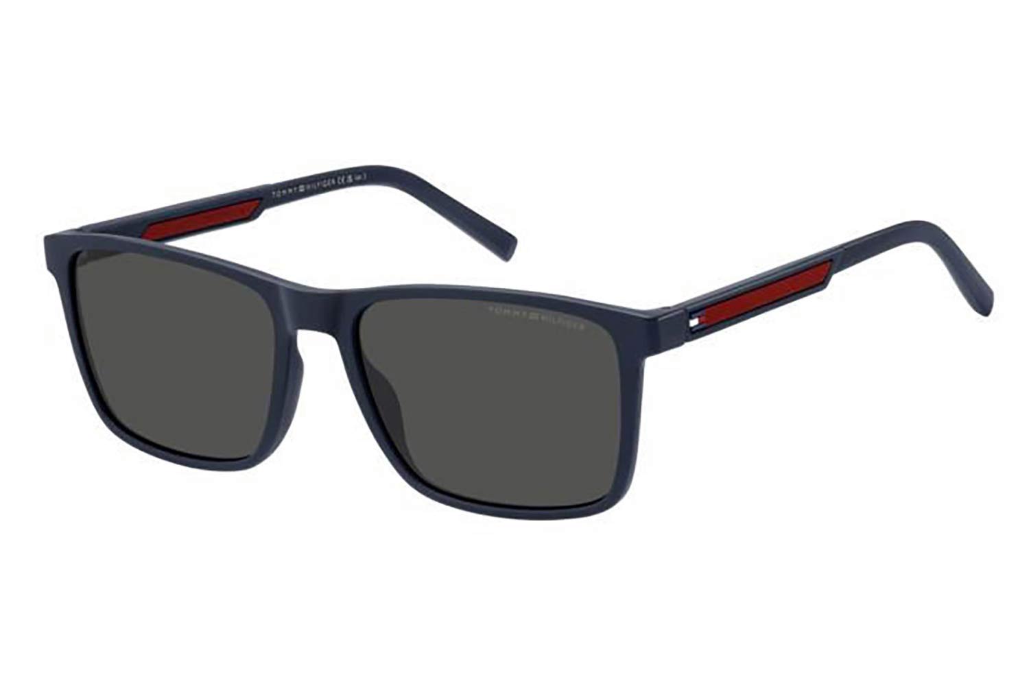 56 TOMMY-HILFIGER TH 2201S 8RU IR 56, Τετράγωνο σκελετός poliamide, BLUE RED, φακοί GREY, Ανδρικό, Full Rim, 0 γυαλιά ηλίου Ανδρικό