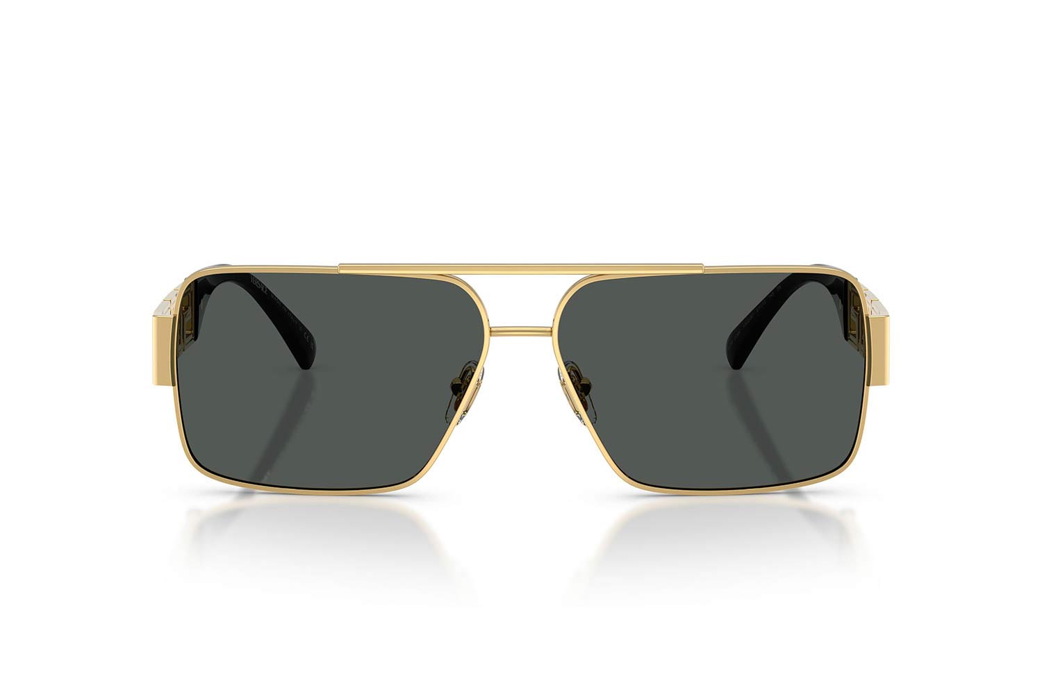 61 Versace 2290 100287 61, Τετράγωνο σκελετός Μεταλλο, Χρυσό, Gold Gold, φακοί Σκούρο Γκρι Πολυανθρακικό - Dark Grey, Ανδρικό, Full Rim, Adjustable Nosepads γυαλιά ηλίου Ανδρικό