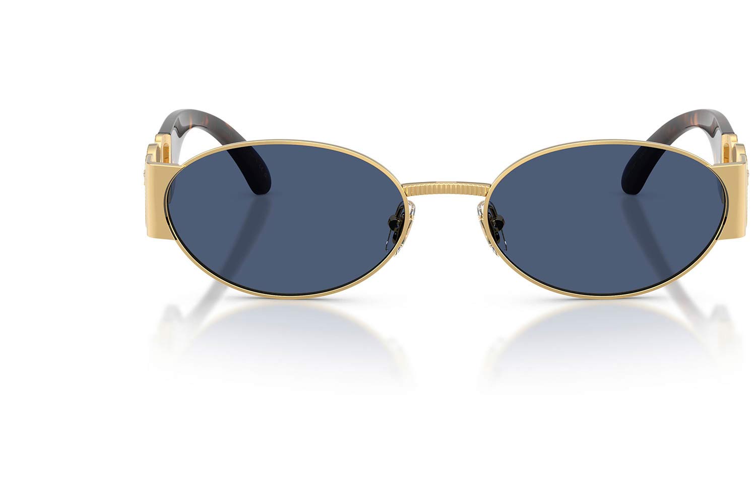 Versace 2299 100280 56, Oval σκελετός Μεταλλο, Χρυσό, Gold Gold, φακοί Σκούρο Μπλε Πολυανθρακικό - Dark Blue, Ανδρικό, Full Rim, Adjustable Nosepads γυαλιά ηλίου Ανδρικό