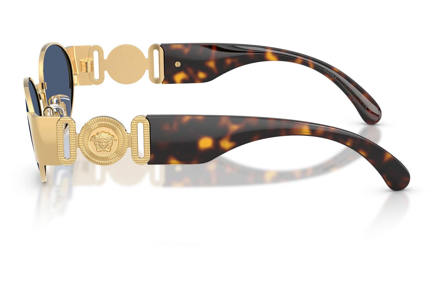 Τα Versace VE2299 100280 (56) αποπνέουν την αυθεντική πολυτέλεια και το δυναμικό στυλ του οίκου Versace μέσα από έναν κομψό oval σχεδιασμό. Ο μεταλλικός σκελετός σε λαμπερή χρυσή απόχρωση δημιουργεί ένα εκλεπτυσμένο και εντυπωσιακό αποτέλεσμα, ενώ οι σκούρο μπλε φακοί από πολυανθρακικό υλικό προσφέρουν καθαρή όραση και αξιόπιστη προστασία από την έντονη ηλιακή ακτινοβολία. Το μοντέλο συνδυάζει διαχρονική αισθητική με μοντέρνο χαρακτήρα, αποτελώντας ιδανική επιλογή για άνδρες που θέλουν ένα κομψό και ιδιαίτερο ζευγάρι γυαλιών ηλίου. Διαθέσιμο στο Eye-Shop.gr.