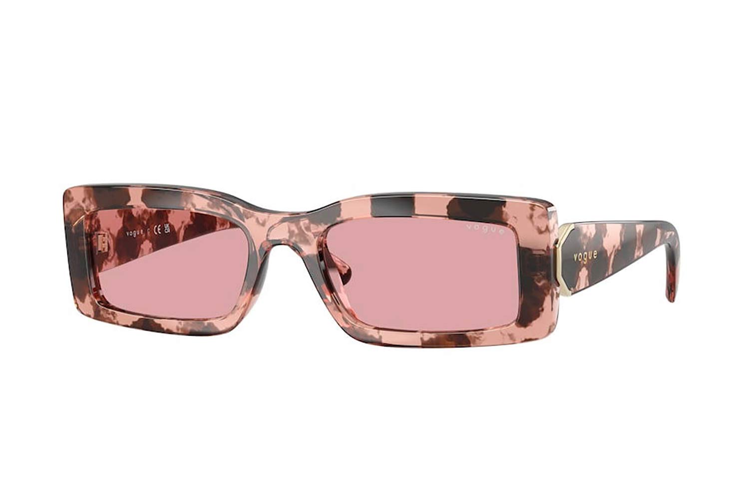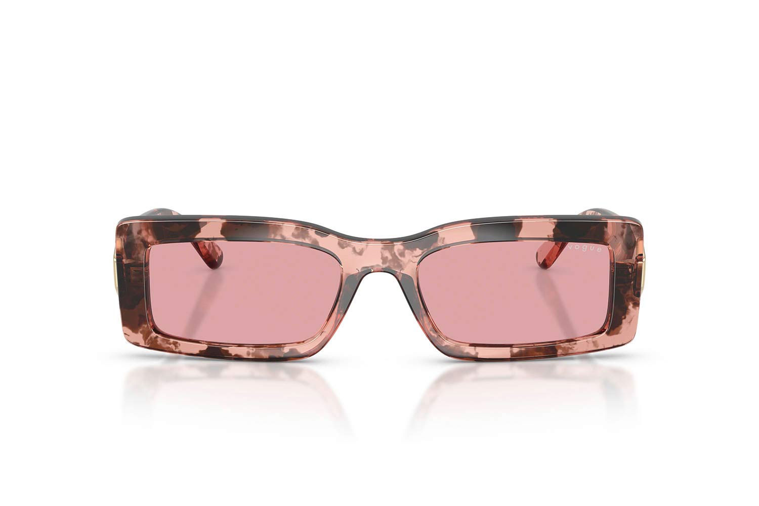 53 Vogue 5674S 319984 53, Τετράγωνο σκελετός Nylon, Ροζ, Pink Rose Havana, φακοί Ανοιχτό Βιολετί Πολυανθρακικό - Light Violet, Γυναικείο, Full Rim, High Bridge Fit γυαλιά ηλίου Γυναικείο
