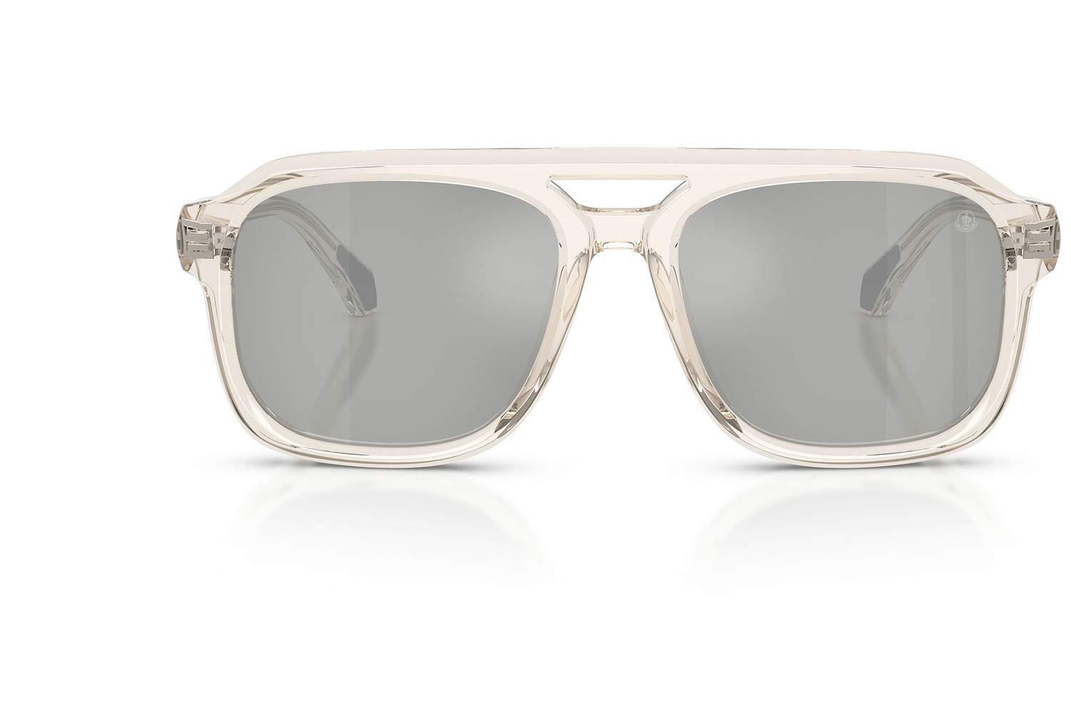 Moncler 6024 VANTOS 30037I 56, Pillow σκελετός Acetate, Άσπρο, White Transparent Butter, φακοί Ασημί Καθρέφτης Βιολογικό Πολυαμίδιο - Mirror Silver, Unisex, Full Rim, High Bridge Fit γυαλιά ηλίου Unisex
