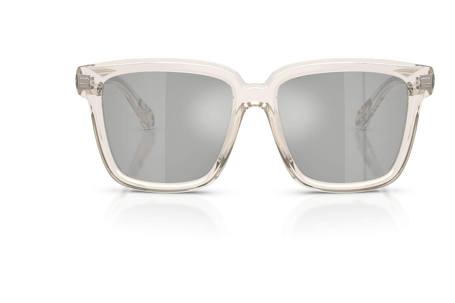 Moncler 6026 CLASICO 30037I 54, Pillow σκελετός Acetate, Άσπρο, White Transparent Butter, φακοί Ασημί Καθρέφτης Βιολογικό Πολυαμίδιο - Mirror Silver, Unisex, Full Rim, High Bridge Fit γυαλιά ηλίου Unisex